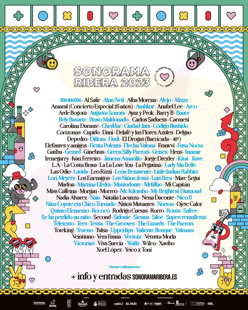 Al igual que los artistas anunciados el pasado diciembre, esta nueva tanda de confirmaciones representa un prisma diverso y ecléctico de la música a nivel nacional (e internacional), pero sin perder la personalidad inconfundible de Sonorama Ribera que ha enamorado a cientos de miles de asistentes durante las pasadas 25 ediciones. Algunos de los artistas más destacados que han sido confirmados son Alizzz, Dillom, Jimena Amarillo, Lori Meyers o Trueno, entre otros tantos.