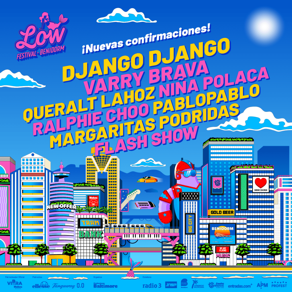 Low Festival anuncia hoy ocho nuevos nombres: Django Django, Varry Brava, Niña Polaca, Queralt Lahoz, Pablopablo, Ralphie Choo, Margaritas Podridas y Flash Show que se unen a los ya confirmados Placebo, Interpol, Vetusta Morla, Viva Suecia, The Vaccines, Bombay Bicycle Club y Deluxe entre otras que volverán a llenar Benidorm de música el 28, 29 y 30 de julio.