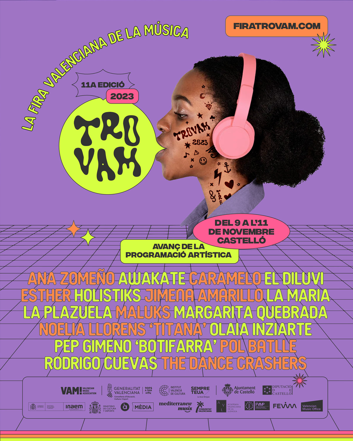 La Fira Valenciana de la Música Trovam presenta un adelanto de la programación artística que se desarrollará entre el 9 y el 11 de noviembre en Castelló de la Plana. En su undécima edición, la Fira mantendrá su vocación de escaparate de la escena musical valenciana con la presencia de intérpretes como Jimena Amarillo, El Diluvi, Pep Gimeno “Botifarra”, Esther, Maluks, La Maria y Noelia Llorens “Titana”. Además, actuarán Margarita Quebrada, Caramelo, Holistiks y Ana Zomeño. El cartel se completa con bandas y solistas llegados de otros puntos del Estado como los andaluces La Plazuela, el asturiano Rodrigo Cuevas, la navarra Olaia Inziarte, los murcianos Awakate y el catalán Pol Batlle.