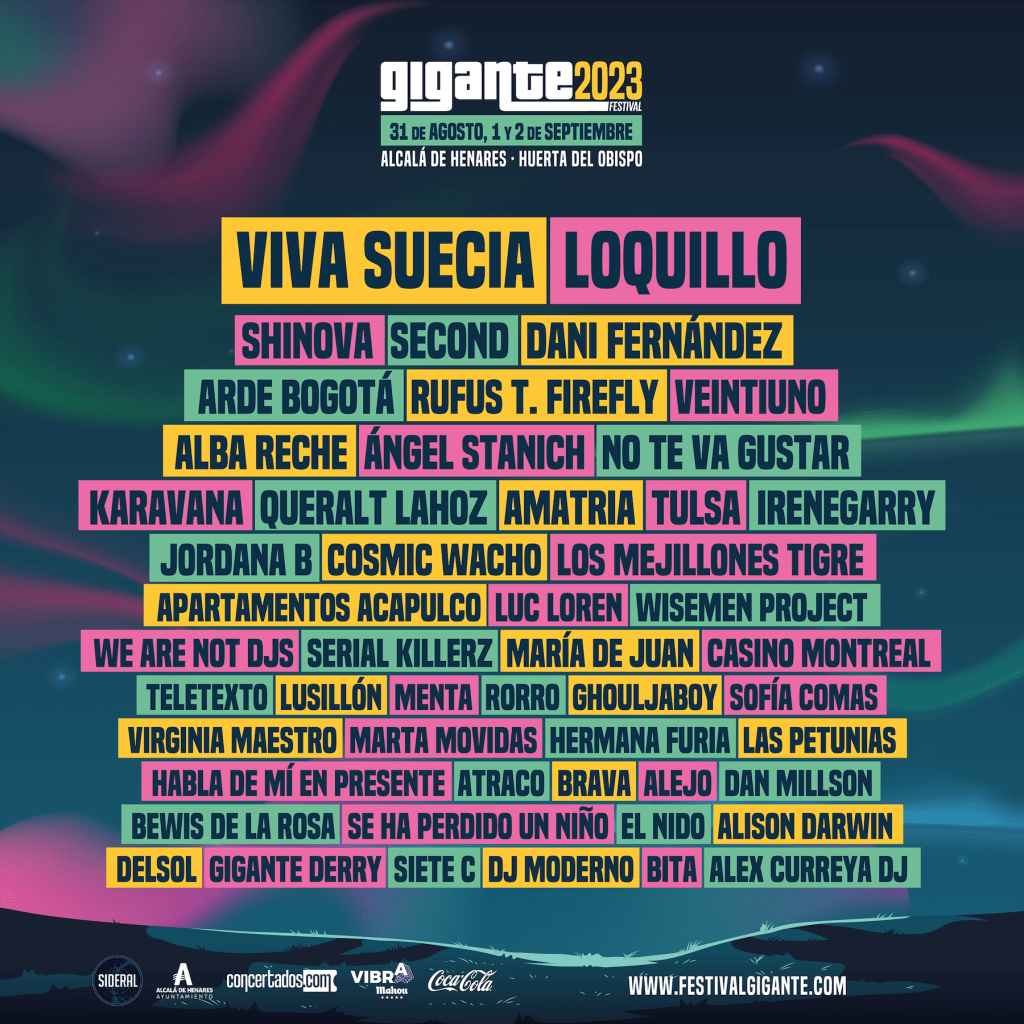 El Festival Gigante, que celebrará una nueva edición el 31 de agosto, 1 y 2 de septiembre de 2023 en la Huerta del Obispo de Alcalá de Henares, desvela los últimos artistas que conforman el cartel de la edción 2023.