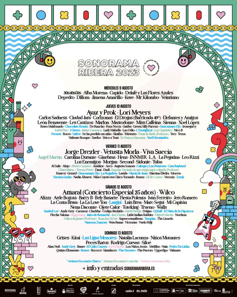 También han comunicado los artistas que estarán en el Escenario Charco, uno de los más emblemáticos del festival y que cuenta con propuestas musicales del ámbito iberoamericano; en el Escenario Comedia, con monólogos, actuaciones y podcasts en directo; y en el Sonorama Baby Ruta del Vino, un escenario pensado especialmente para el público más joven del festival.
