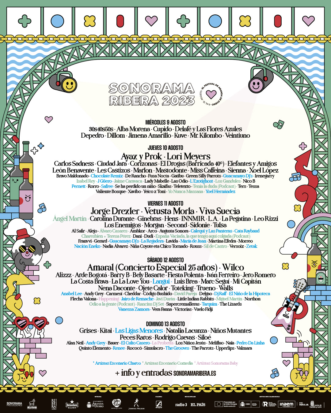 También han comunicado los artistas que estarán en el Escenario Charco, uno de los más emblemáticos del festival y que cuenta con propuestas musicales del ámbito iberoamericano; en el Escenario Comedia, con monólogos, actuaciones y podcasts en directo; y en el Sonorama Baby Ruta del Vino, un escenario pensado especialmente para el público más joven del festival.