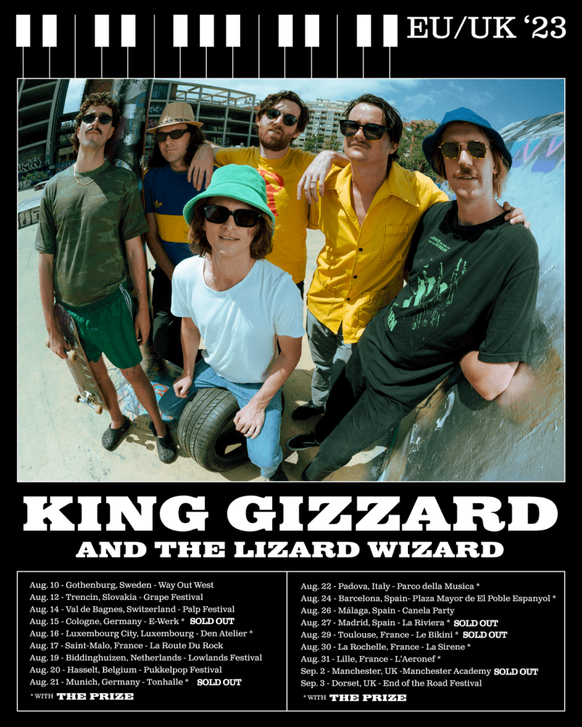 Precisamente otra Feria, del Disco para más señas, les acompañará en una de sus tres inminentes citas en nuestro país la próxima semana. El jueves 24 de agosto, a su esperadísimo retorno a Barcelona, concretamente en el Poble Espanyol, la banda australiana sumará a su concierto una nueva entrega de la Gizzverse Record Fair, el evento soñado por todos sus fans y el espacio donde encontrar merchandise único (totebags, posters…) así como sus diferentes álbumes de estudio, bootleggers, 7 pulgadas exclusivos y otras preciadas joyas de coleccionismo. Cualquier persona con entrada para el concierto podrá acceder también a esta Gizzverse Record Fair.