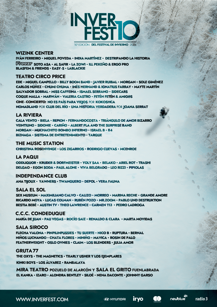 Todo ello en una noche en la que se desveló la extensa programación de Inverfest 2024, que ofrecerá 120 conciertos en 13 recintos y salas de Madrid, Pozuelo de Alarcón y Fuenlabrada, de las cuales este año se estrenan en el ciclo The Music Station e Independance Club.