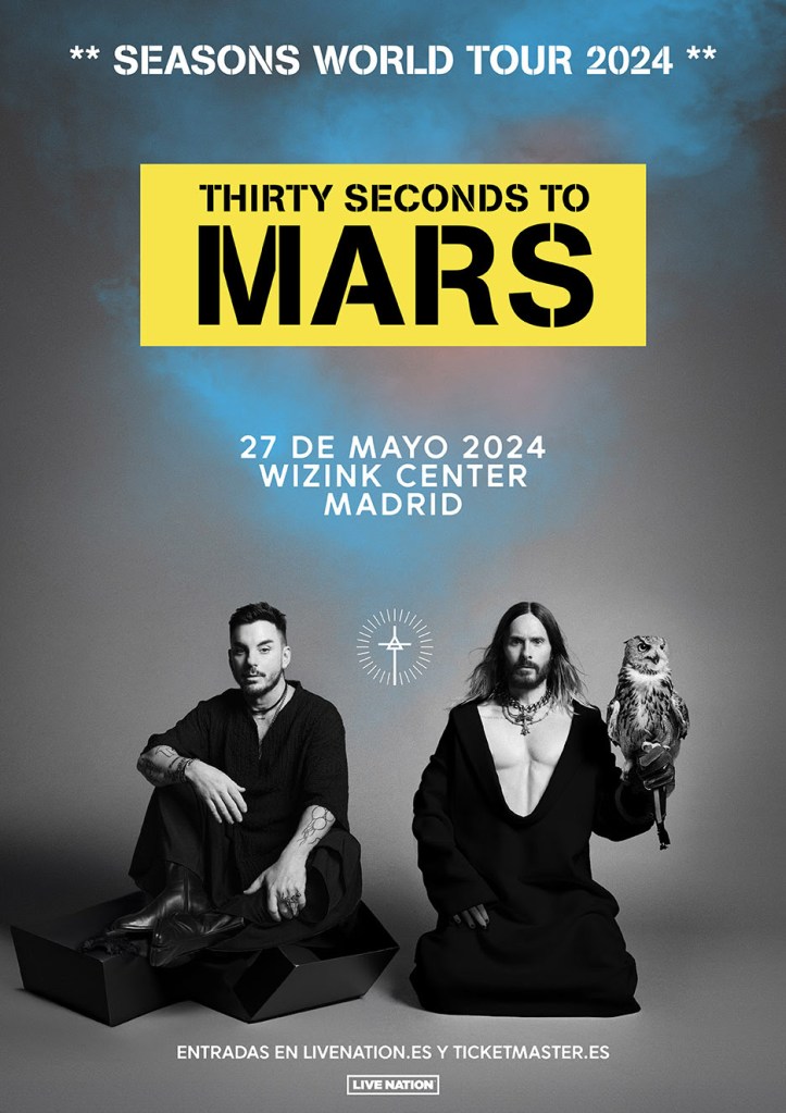 Seis años después de su último paso por Madrid, Thirty Seconds To Mars volverán a la capital española para presentarnos su sexto álbum It’s The End Of The World But It’s A Beautiful Day. El grupo formado por la superestrella Jared Leto y por su hermano Shannon Leto traerá su rock alternativo al WiZink Center el 27 de mayo de 2024. No será la única fecha en nuestro país ya que tambien actuaran en el festival gallego O Son Do Camiño.