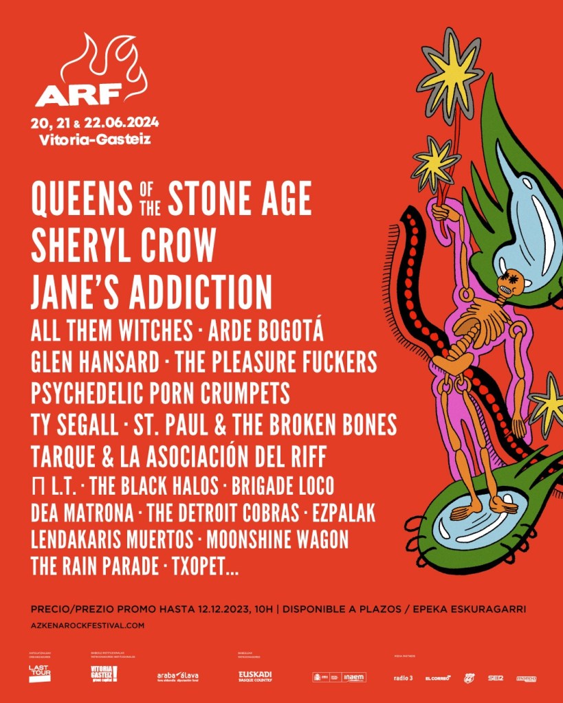 Azkena Rock Festival desvela nuevos nombres que formarán parte del gran encuentro con el rock and roll y la música en directo que tendrán lugar los días 20, 21 y 22 de junio de 2024 en Mendizabala, Vitoria-Gasteiz. Jane’s Addiction, como nuevo cabeza de cartel, y Tarque & La Asociación del Riff, Psychedelic Porn Crumpets y The Black Halos se suman a grandes figuras ya anunciadas como Queens Of The Stone Age, Sheryl Crow o Arde Bogotá. Un regalo de Navidad adelantado que, además, ya está a la venta en la página de Tickets con los bonos a un precio de lanzamiento que se mantendrá hasta el próximo 12 de diciembre a las 10:00 am.