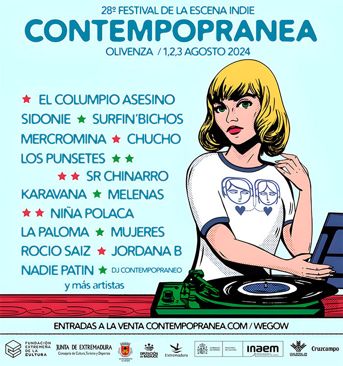 Contempopránea es, desde hace 28 años, una de las principales referencias del calendario de festivales españoles, por su coherencia artística, por ser festival pionero en España que mantiene su compromiso con la escena indie nacional. Olivenza (Badajoz)acogerá la excelencia de los festivales indies en su marco incomparable.
