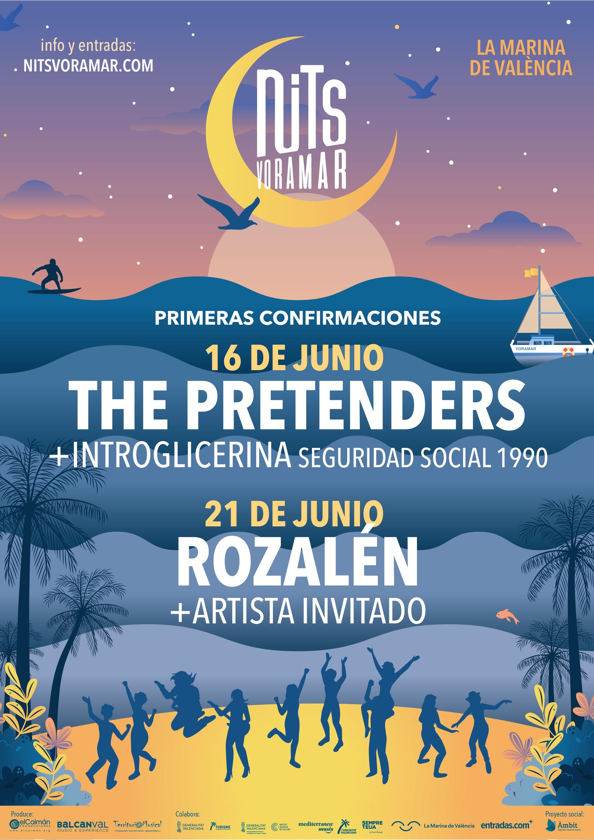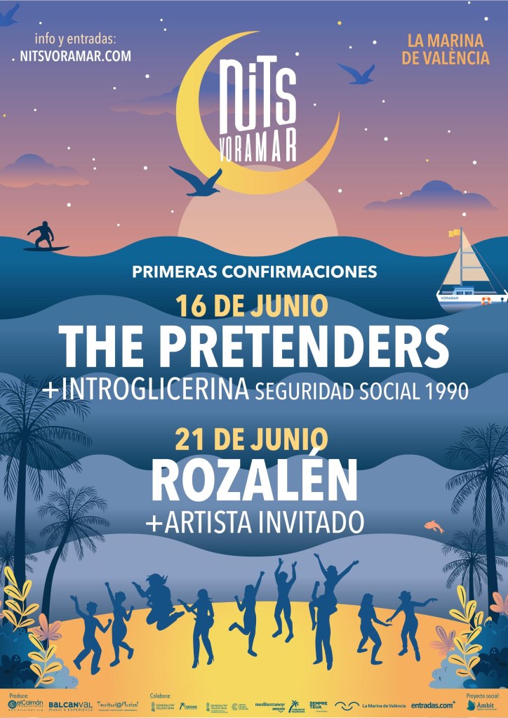 El cartel empieza a tomar forma con las primeras confirmaciones. El domingo 16 de junio, tendrá lugar la doble actuación de The Pretenders y Seguridad Social en un formato especial con la formación original que grabó ‘Introglicerina’ en 1990, un concierto que promete ser histórico para la escena rock de la ciudad de València. Y el viernes 21 de junio, será el turno de Rozalén junto a un artista invitado todavía por desvelar. Las entradas para estas primeras citas ya están a la venta en nitsvoramar.com. En los próximos días, se anunciará el cartel completo de este ciclo que pretende ofertar al inicio de la época estival una programación musical de nivel y para todos los gustos.