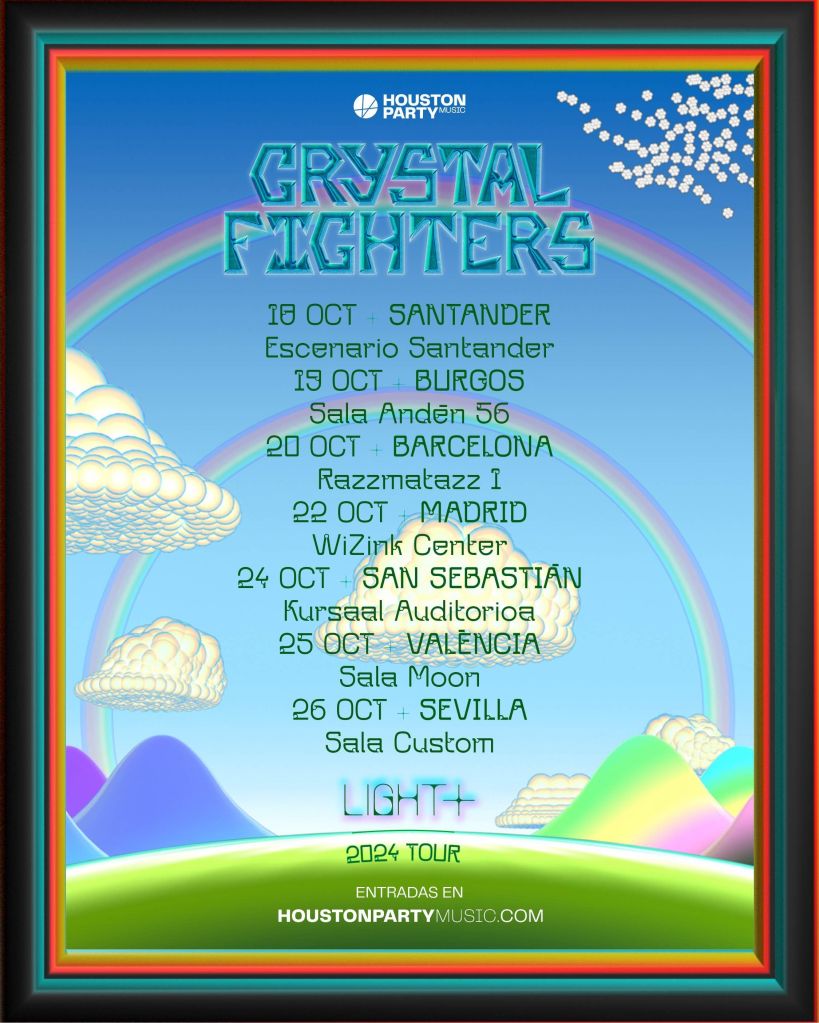 Crystal Fighters actuarán el 25 de octubre en València (Sala Moon). Las entradas para este concierto se ponen a la venta mañana martes 11 de junio a las 10 horas. Con esta fecha se completa la gira de octubre de los británicos, que, además de por València, también pasará por las siguientes ciudades: Santander, el día 18 (Escenario Santander); Burgos, el 19 (Sala Andén 56); Barcelona, el 20 (Razzmatazz 1); Madrid, el 22 (WiZink Center); San Sebastián, el 24 (Kursaal Auditorioa); y Sevilla, el 26 (Sala Custom). Y también esta fecha que anunciamos hoy ayudará a sus fans valencianos a sobrellevar la cancelación de la actuación de Crystal Fighters este pasado sábado en el Festival de les Arts por imperativos meteorológicos. En el vídeo que ha compartido el cantante del grupo, Sebastian Pringle, en el perfil del grupo comenta las circunstancias de esa suspensión.