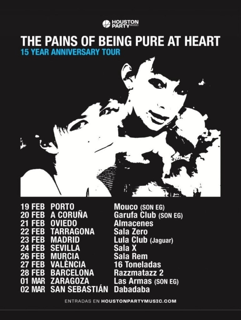 El itinerario ibérico de esta gira, bautizada como “The Pains Of Being Pure At Heart plus support” (el nombre del artista telonero será hecho público más adelante) se compone de un total de 10 ciudades.