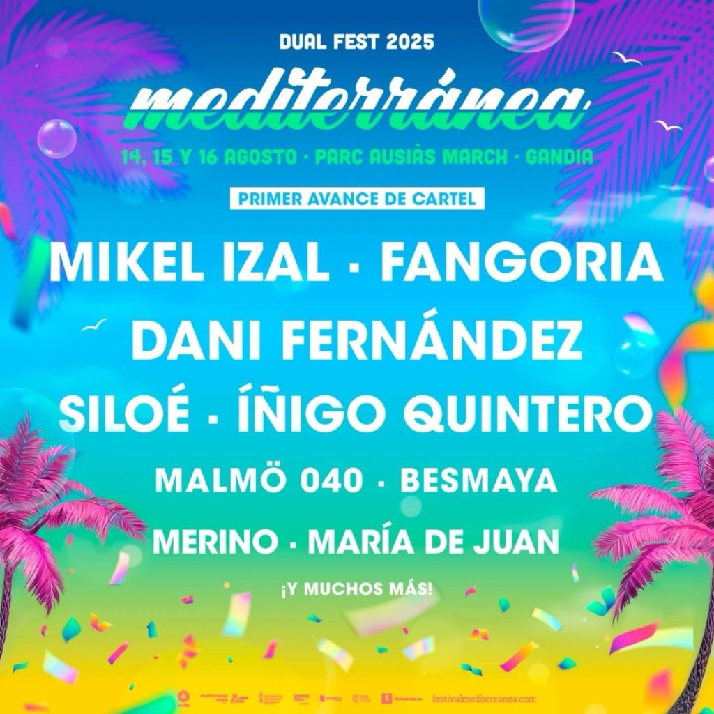 Mikel Izal, Fangoria y Dani Fernández encabezan esta primera tanda de confirmaciones del festival Mediterránea 2025, que se celebrará durante el fin de semana del 14 al 16 de agosto en el Parque Ausías March de Gandia.