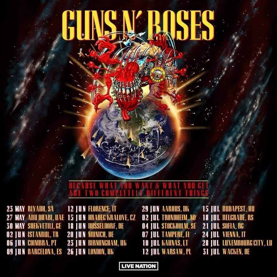 Guns N’ Roses ofrecerá un show único en nuestro país el próximo 9 de junio de 2025 en el Estadi Olímpic de Barcelona, dentro de la gira que la banda ha anunciado, encabezando estadios y festivales durante todo el verano con invitados especiales como Public Enemy, Rival Sons y Sex Pistols con Frank Carter en fechas seleccionadas.