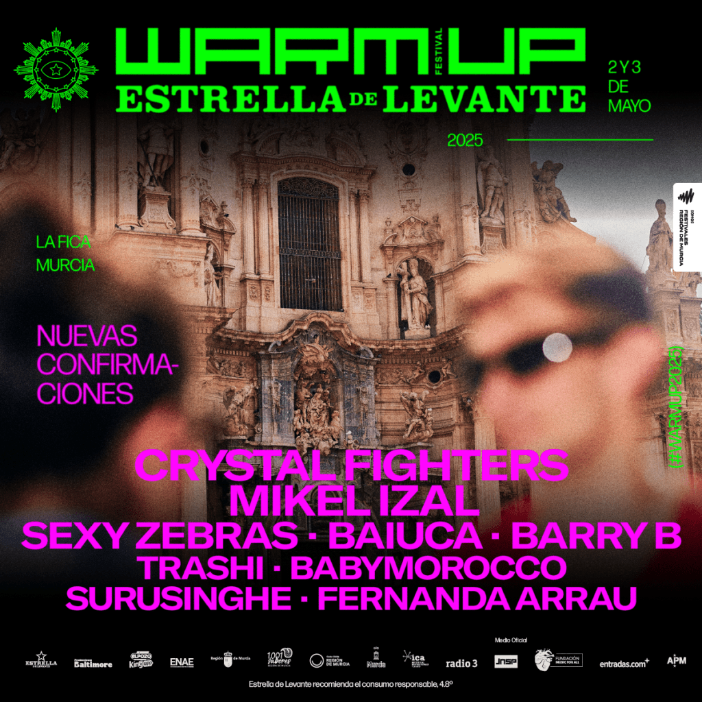 Crystal Fighters y Mikel Izal lideran las confirmaciones navideñas de WARM UP Estrella de Levante para su edición de 2025. Junto a ellos, la organización ha sumado, también, al cartel a Sexy Zebras, Baiuca, Barry B, Trashi, Babymorocco, Surusinghe y Fernanda Arrau. Estos nuevos nombres se añaden a los ya confirmados hasta el momento, Franz Ferdinand, Polo&Pan, Mando Diao, Claptone, Fangoria, Amaia, Carolina Durante, Zahara y Siloé, entre otros muchos nombres confirmados que estarán el 2 y 3 de mayo en La Fica (Murcia).