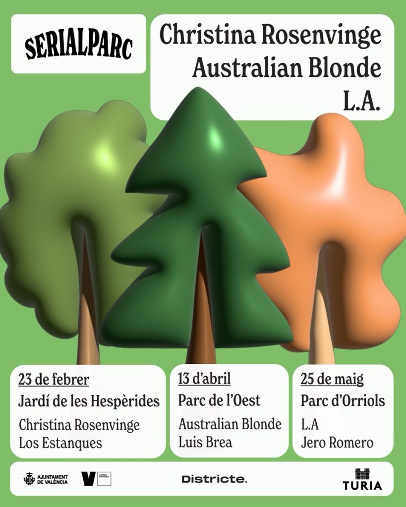 Christina Rosenvinge y Los Estanques en el Jardín de las Hespérides (23 de febrero), Australian Blonde y Luis Brea en el Parque del Oeste (13 de abril), y L.A. y Jero Romero en el Parque de Orriols (25 de mayo), son los artistas confirmados para esta edición de 2025.