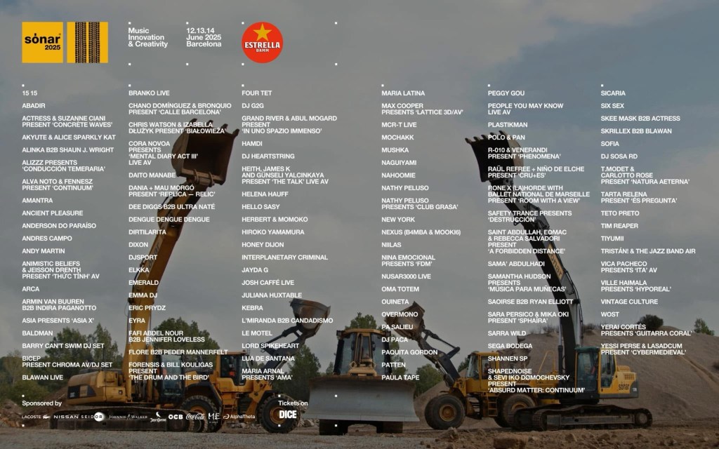 La espera ha terminado. Ya está aquí el lineup de Sónar 2025 al completo. Son 117 actuaciones en total, que van desde DJ sets llena pistas hasta shows de estadio y desde actuaciones de alto impacto hasta los y las mejores selectoras del momento.