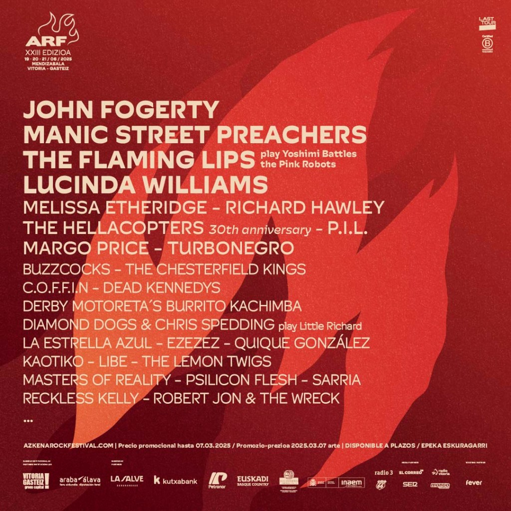 John Fogerty es un auténtico tesoro americano. Como líder de Creedence Clearwater Revival, el artista forjó un sonido propio y distintivo, donde a partes iguales, el blues, country y rock and roll se encontraban junto a su lírica singularmente evocadora. Fogerty ha sido incluido en el Rock & Roll Hall of Fame y ha vendido más de 100 millones de discos a lo largo de su amplia trayectoria. Hoy salda una deuda con el público del Azkena Rock Festival al confirmar su presencia, después de que la pandemia obligara en 2020 a suspender su muy esperada actuación tras el gran recuerdo que había dejado tres años antes interpretando los clásicos de la Creedence. El legendario John Fogerty se incorpora al cartel del Azkena Rock Festival, y lo hace además en fecha exclusiva, uniéndose a Manic Street Preachers, en su única fecha en España, The Flaming Lips, interpretando su disco más mítico, Yoshimi Battles the Pink Robots, la icónica Lucinda Williams, el 30 aniversario de The Hellacopters, la banda de la película La estrella azul, liderada por su protagonista, Pepe Llorente, que ha sido reconocido este fin de semana con el Goya al Mejor Actor Revelación, y muchas otras bandas, a las que hoy se suman cuatro nombres más. Azkena Rock Festival celebrará su 23ª edición los días 19, 20 y 21 de junio en Mendizabala, Vitoria-Gasteiz.
