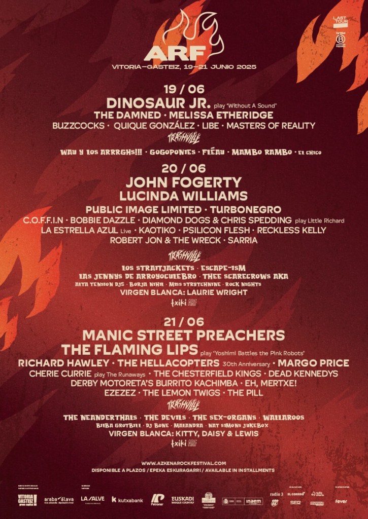 Azkena Rock Festival cierra su cartel y presenta la programación por días con un cartel en el que destacan el legendario John Fogerty con todos los clásicos de su repertorio y en fecha única en España, Manic Street Preachers, también en fecha exclusiva; The Flaming Lips, interpretando Yoshimi Battles the Pink Robots; la icónica Lucinda Williams;el 30 aniversario de The Hellacopters, y al que también se suman hoy Dinosaur Jr, interpretando Without a Sound. Además, tras la buena acogida de la edición 2024, vuelve a Azkena el espacio para familias Txiki ARF y se desvelan los nombres que actuarán en la Virgen Blanca. Todo para vivirlo en directo en la 23ª edición de Azkena Rock Festival los días 19, 20 y 21 de junio en Mendizabala, Vitoria-Gasteiz.