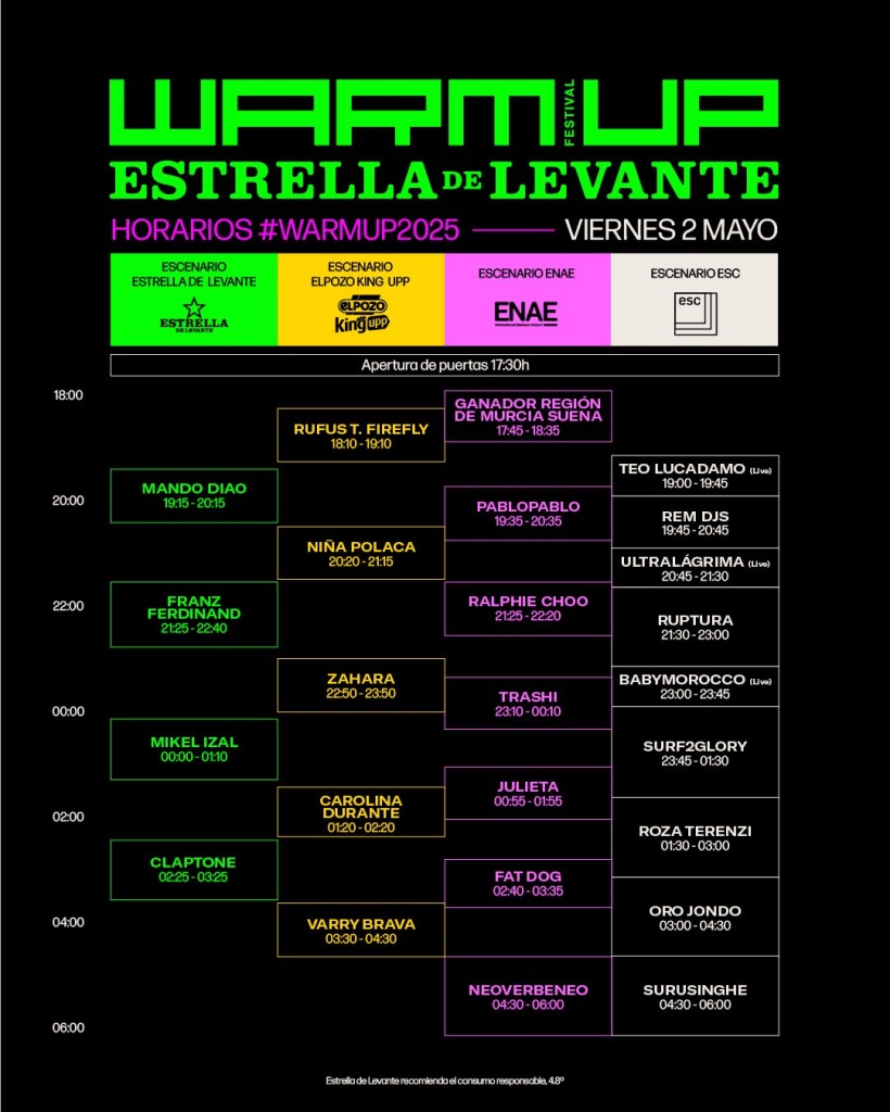 El primer fin de semana del mes de mayo Murcia volverá a vibrar con la mejor música en directo. Con el puente del día 1 como aliciente, la ciudad se transformará en el epicentro cultural del país con WARM UP Estrella de Levante 2025, un evento que promete superar todas las expectativas y sorprender a los que se acerquen a La Fica el 2 y el 3 de mayo.