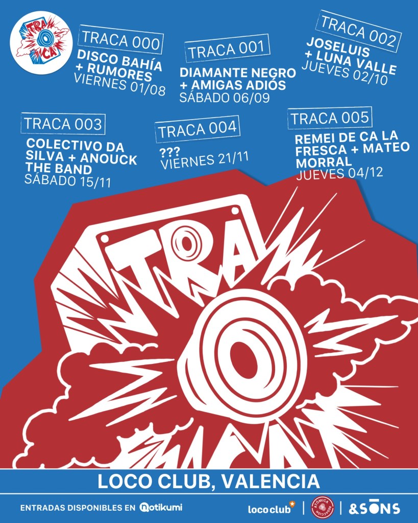 El 1 de agosto del 2025 ha comenzado la andadura de TRACA, el nuevo ciclo de conciertos auspiciado por AndSons Producciones y Redacción Atómica en el Loco Club. Los mexicanos Disco Bahía y los valencianos Rumores han ejercido como padrinos de TRACA, con sendos conciertos que ya quedan para el recuerdo imborrable.