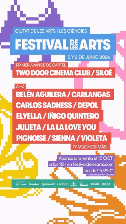 Ya conocemos los primeros nombres de la próxima edición del Festival de les Arts. Encabeza esta lista los norirlandeses Two Door Cinema Club y los vallisoletanos Siloé que repetirán en 2026 tras su espectacular concierto el pasado mes de junio.