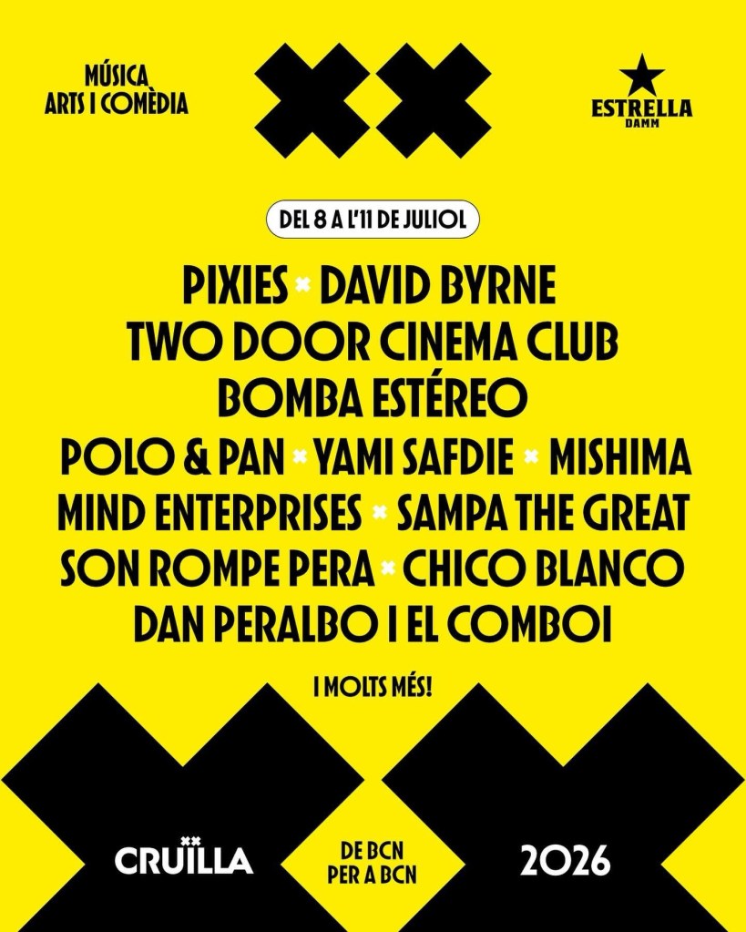 Desde grandes nombres del pop-rock como Pixies o David Byrne, hasta bandas emblemáticas del festival como Two Door Cinema Clubo Bomba Estéreo. También habrá tiempo para bailar de la mano de la electrónica y la música disco con Polo & Pan, Mind Enterprises y Chico Blanco, y descubriremos nuevas maneras de interpretar los sonidos africanos y latinos con Sampa the Great y SonRompe Pera, respectivamente, bailaremos como nunca con Yami Safdie y no faltará el talento de casa con los conciertos de Mishima y Dan Peralbo i El Comboi.