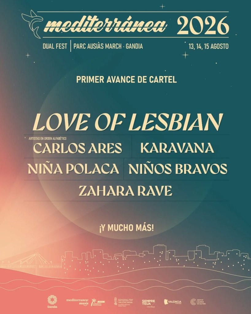 La organización del Festival Mediterránea ha anunciado las primera confirmaciones para su próxima edición. El primer cabeza de cartel son Love of Lesbian, junto a ellos también estarán en Gandía Carlos Ares, Karavana, Niña Polaca, Niños Bravos y Zahara Rave.