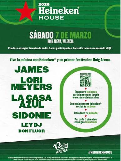 Las entradas para el Heineken® House 2026 ya se encuentran disponibles a través de la web oficial del Roig Arena. Dada la gran expectación generada, se recomienda a los interesados adquirirlas con antelación.