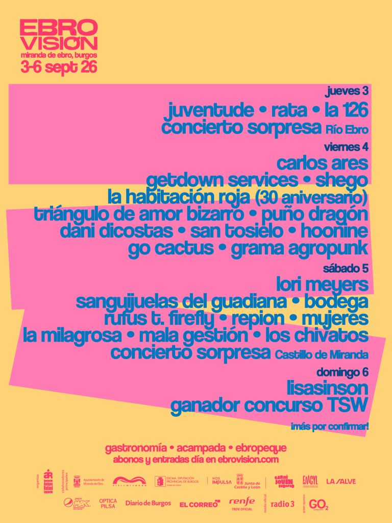 Shego, La Habitación Roja (30 aniversario), Mala Gestión, Lisasinson, Go Cactus y Grama Agropunk se unen a una programación que llenará Miranda de Ebro de música del 3 al 6 de septiembre, y de la que aún quedan muchas incorporaciones por anunciar.